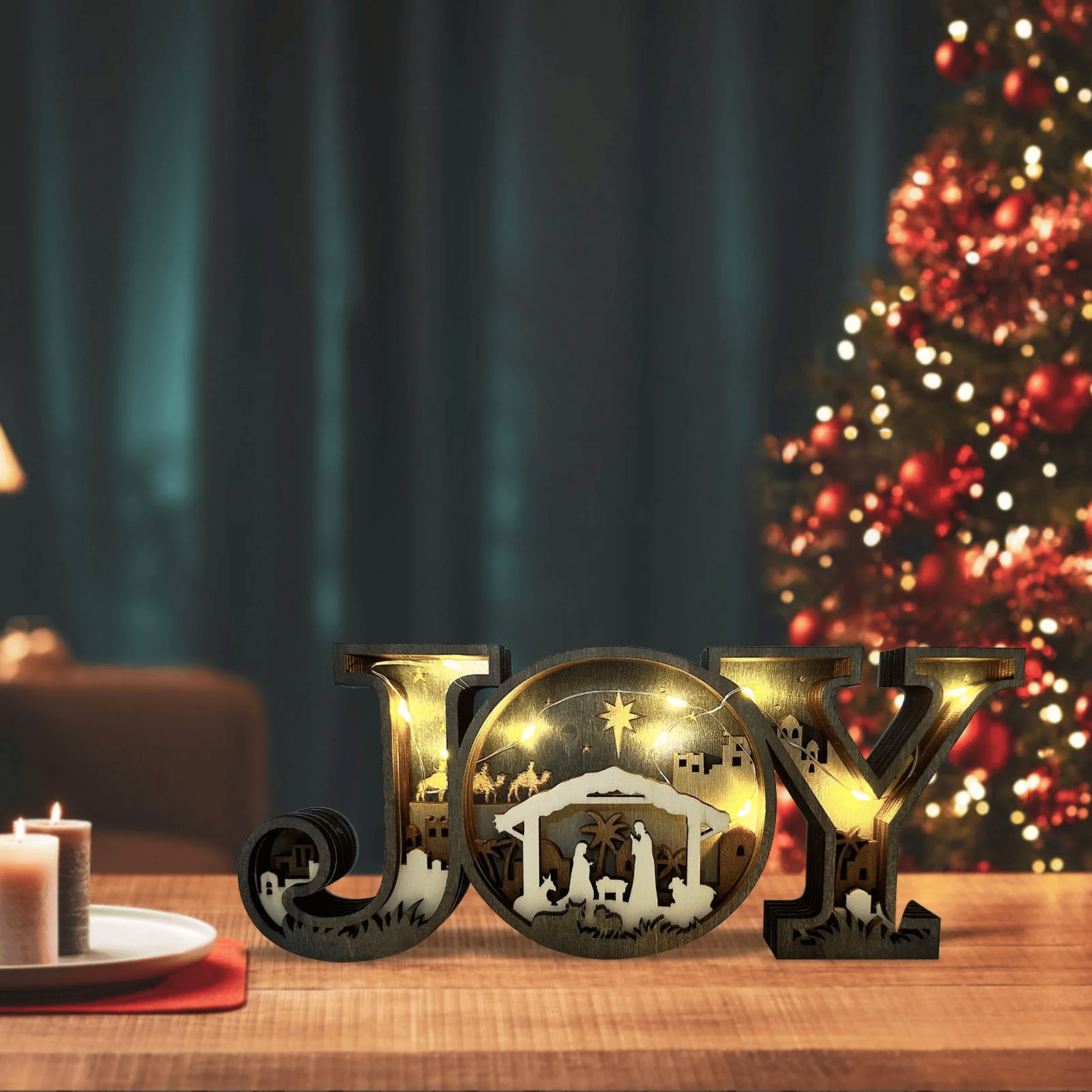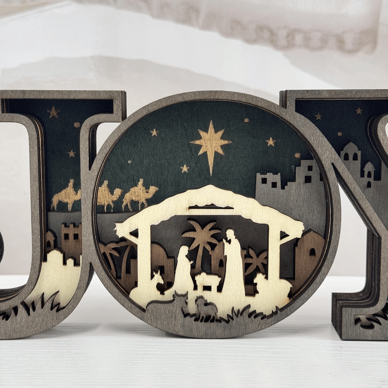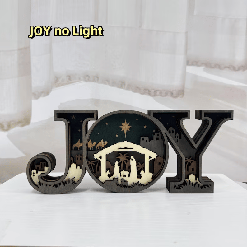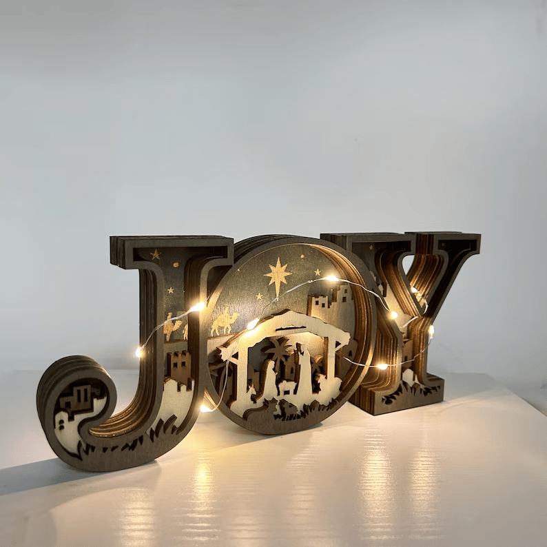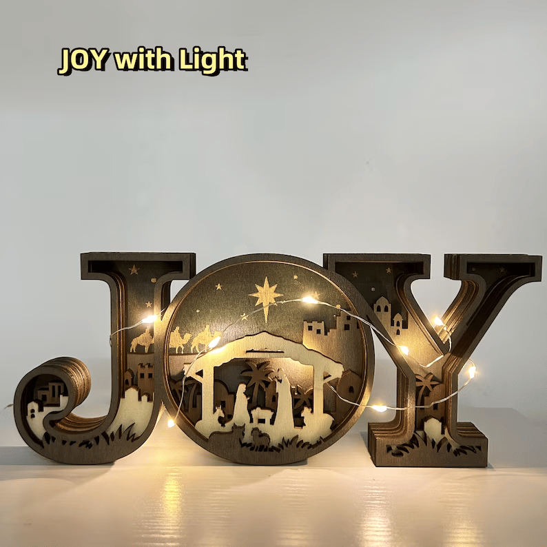 The "JOY" letters are carefully carved to create a beautiful, dimensional effect, adding an artistic flair to your holiday decor.