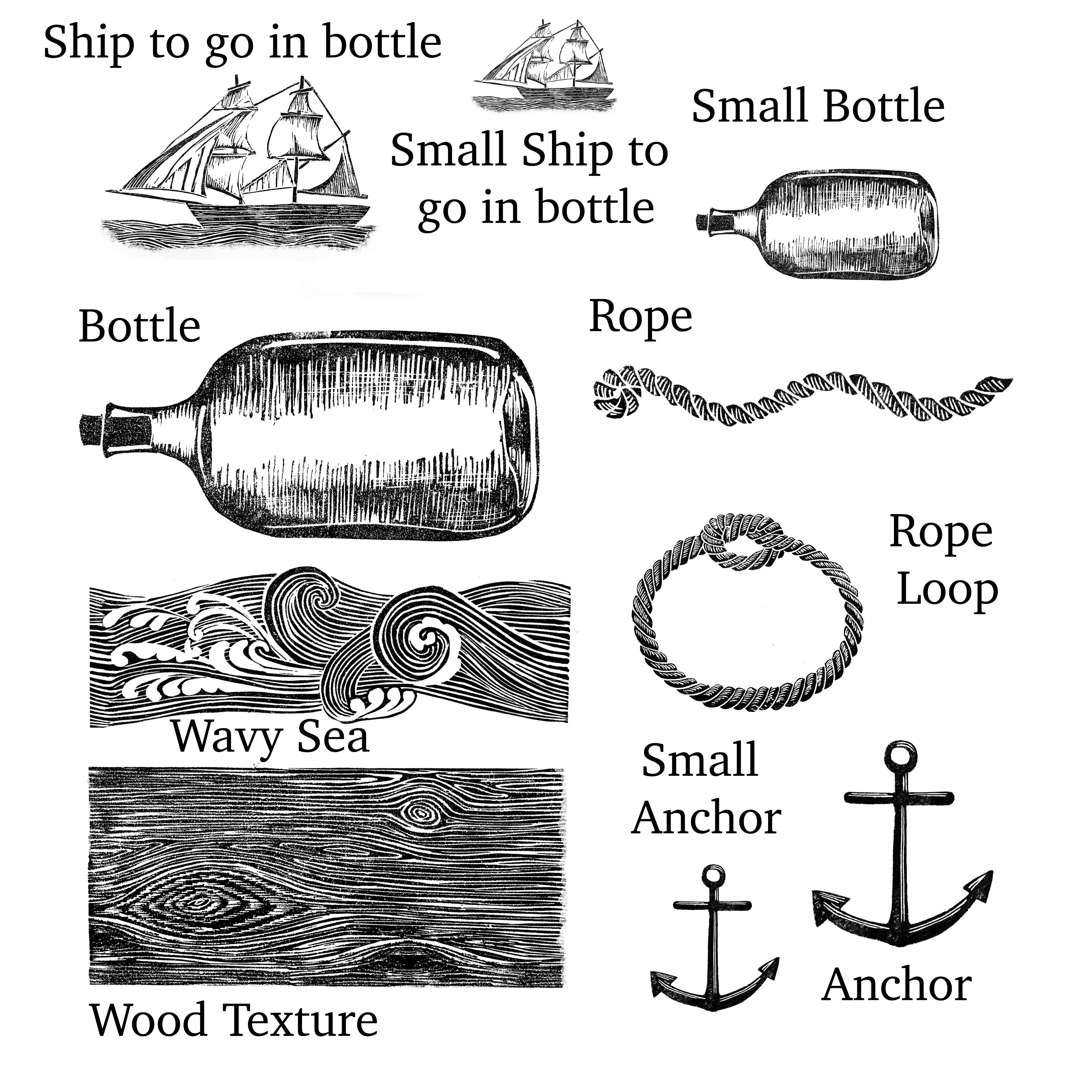 Ship in a Bottle Rubber Stamps, Sea themed stamps, Craft gift