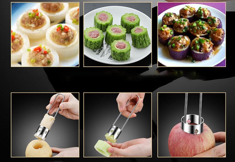 • 🌟 Multifunctional use: In addition to core removal, it can also be used to dig holes and process other fruits and vegetables, suitable for making various dishes, such as cucumber stuffed with meat, nut sandwiches, etc., to take your cooking creativity to the next level!