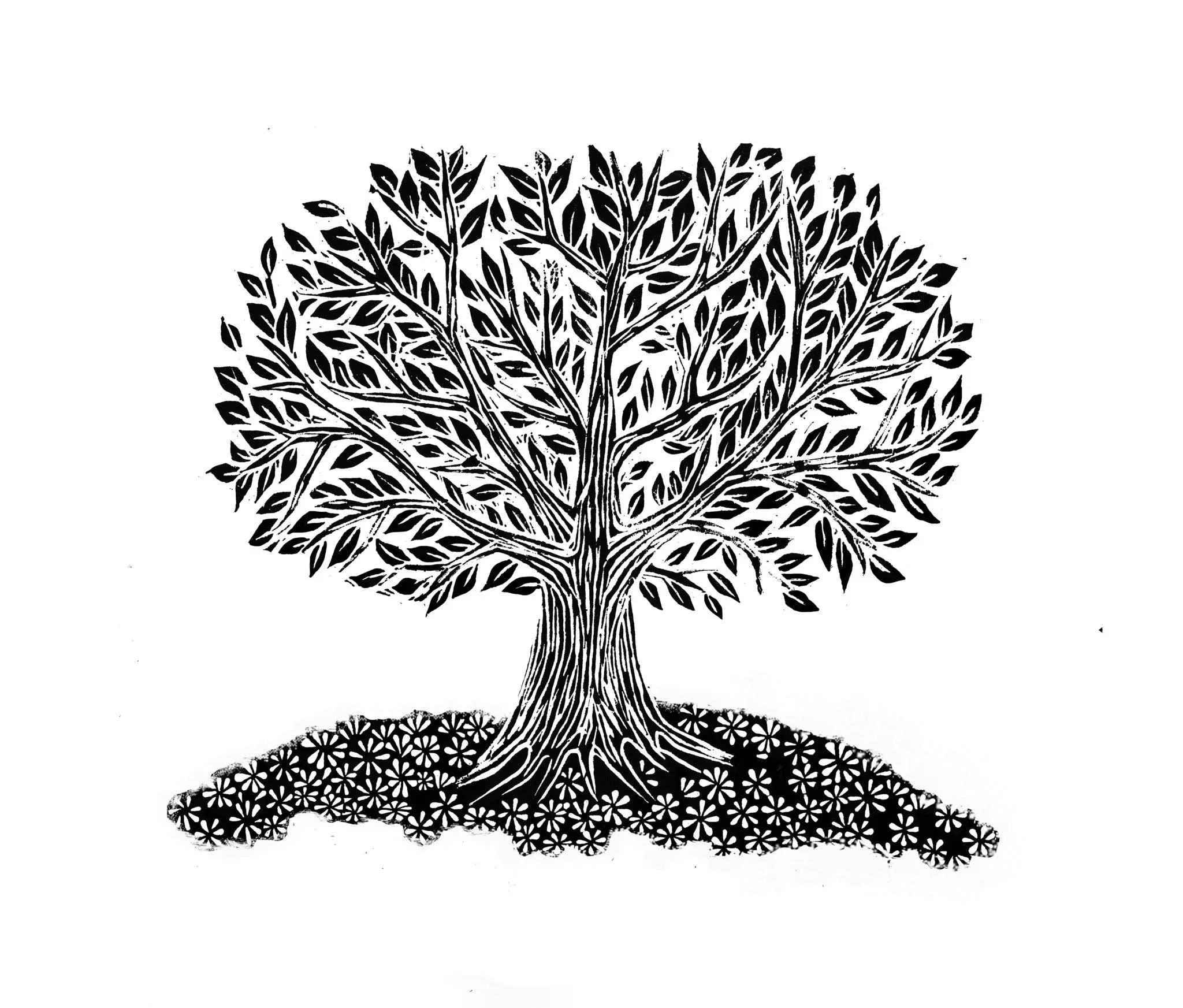 Lino Cut Tree Rubber Stamp