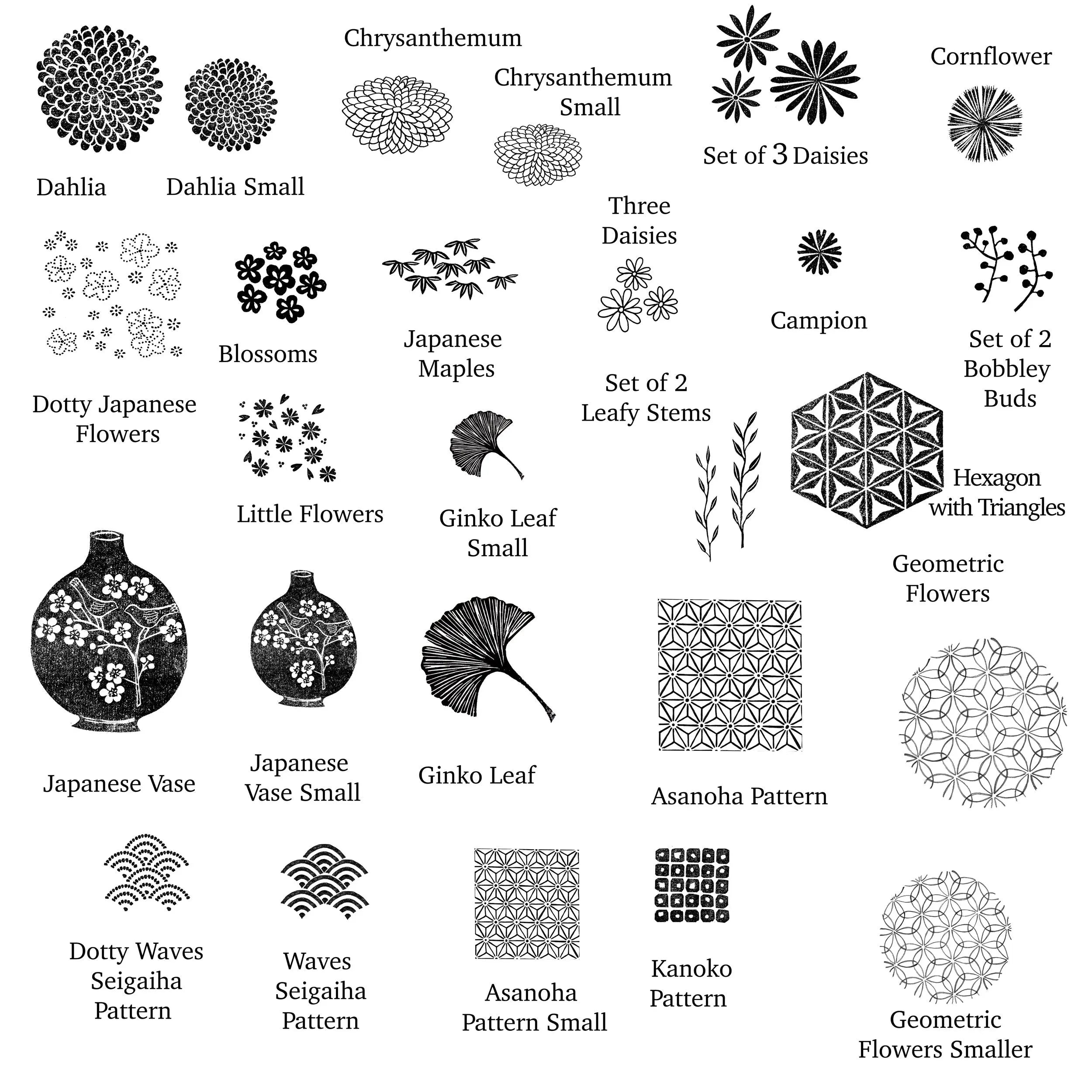 • Japanese Flowers and Pattern Rubber Stamps for Card Making and Creative Projects