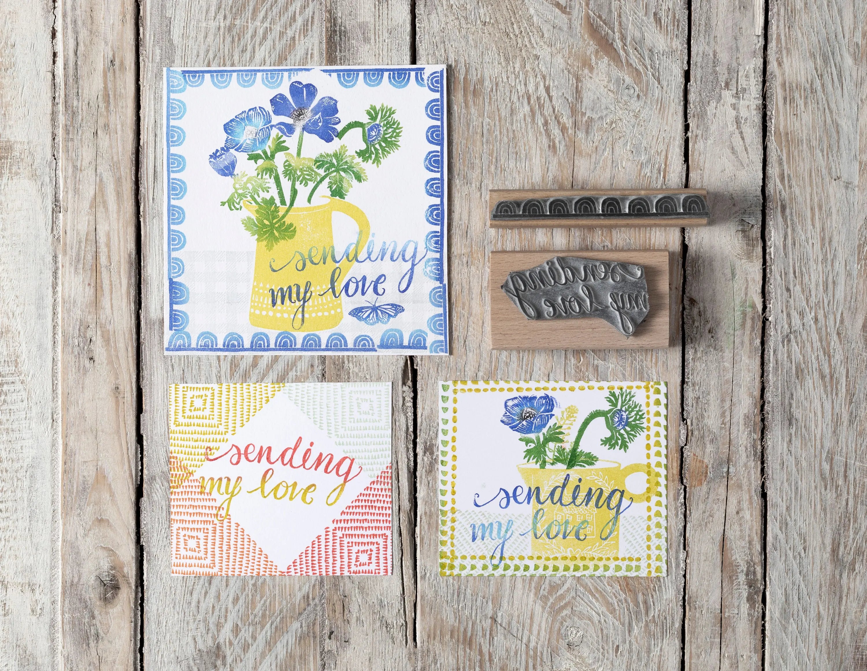 Here is a great little selection of border rubber stamps to help you to add something extra special to your card making and craft projects. Each border stamp is sold separately. The ink pads used here are purple delight, charming pink, golden meadow, green oasis, and summertime these are all versafine clair.