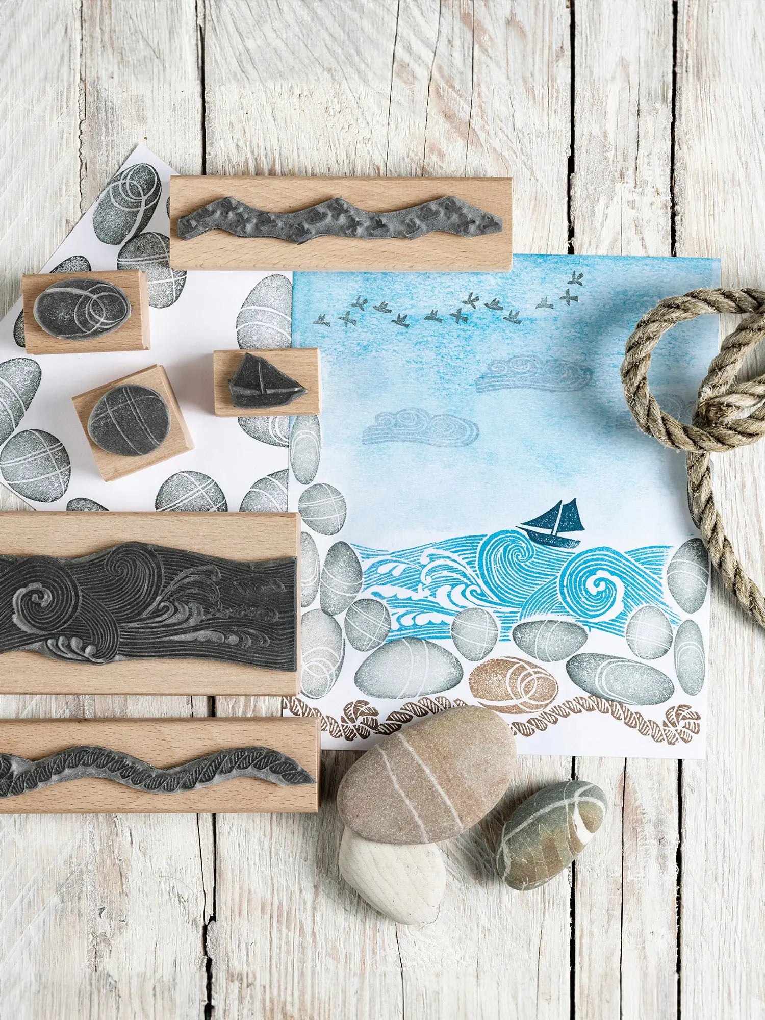 These Lobster and Crab stamps are fun and quirky, perfect for summer card making. All of the stamps can be bought separately, select the design and size you would like from the drop down menu. These crustaceans look fabulous stamped in bright orange, I have used summer time and tulip red versafine here with twilight versafine and cyan versa color for the sea and rope.
